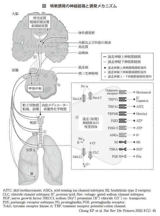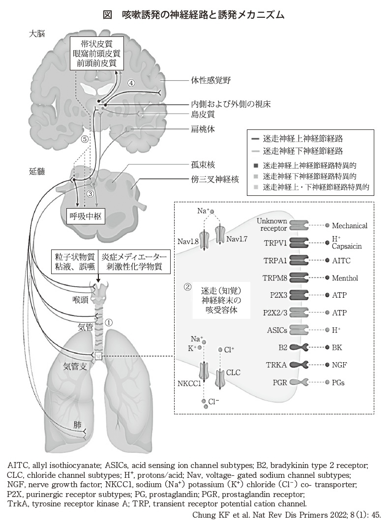 そうですね。基本的には、気道や食道などにある咳受容体に何か異常が起こると、そこの受容体から迷走神経の求心路を介して延髄の孤束核にある咳中枢に刺激が行って、コホッと咳が出るのです。